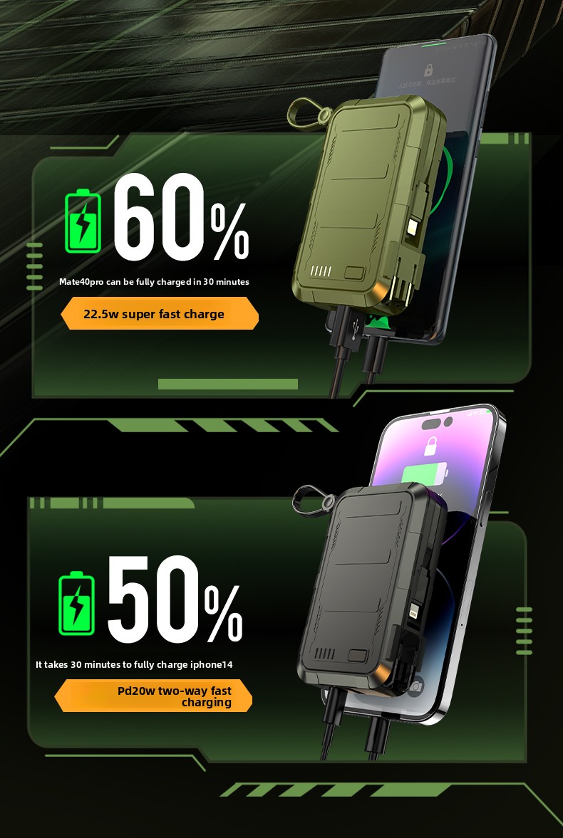 Hyper-Fast 22.5W Charging: Power up at lightning speed. Our advanced technology delivers up to 22.5W output, getting you back to 100% faster than standard power banks. Ideal for quick top-ups between classes, games, or meetings.