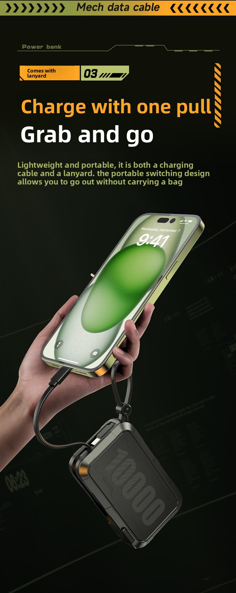 On-the-Go Use: Unplug and use it as a standard, high-capacity portable charger.