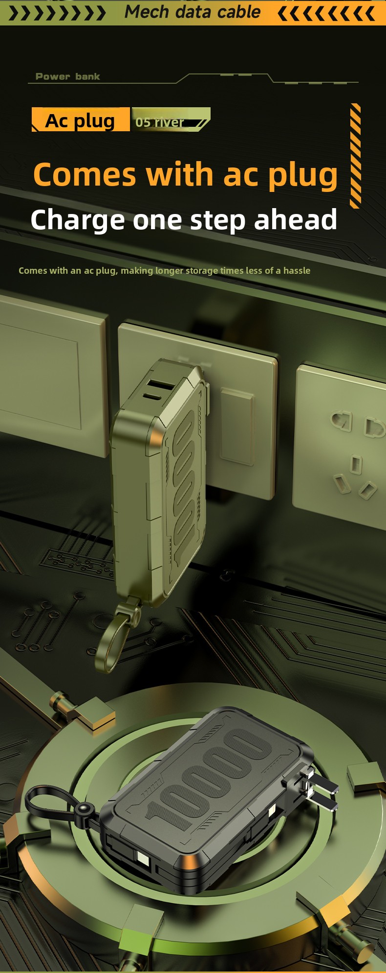 Title: AtlasPlug Pro | 10000mAh Sports Fast Charging Power Bank with Built-in AC Plug & Dual Cables