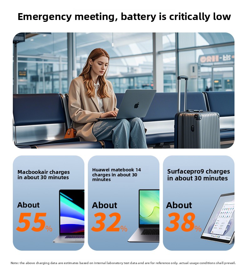 Professionals needing to charge laptops (MacBook, Dell, HP, etc.) on the move.