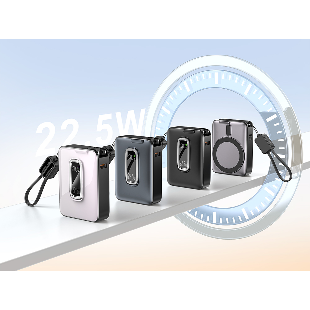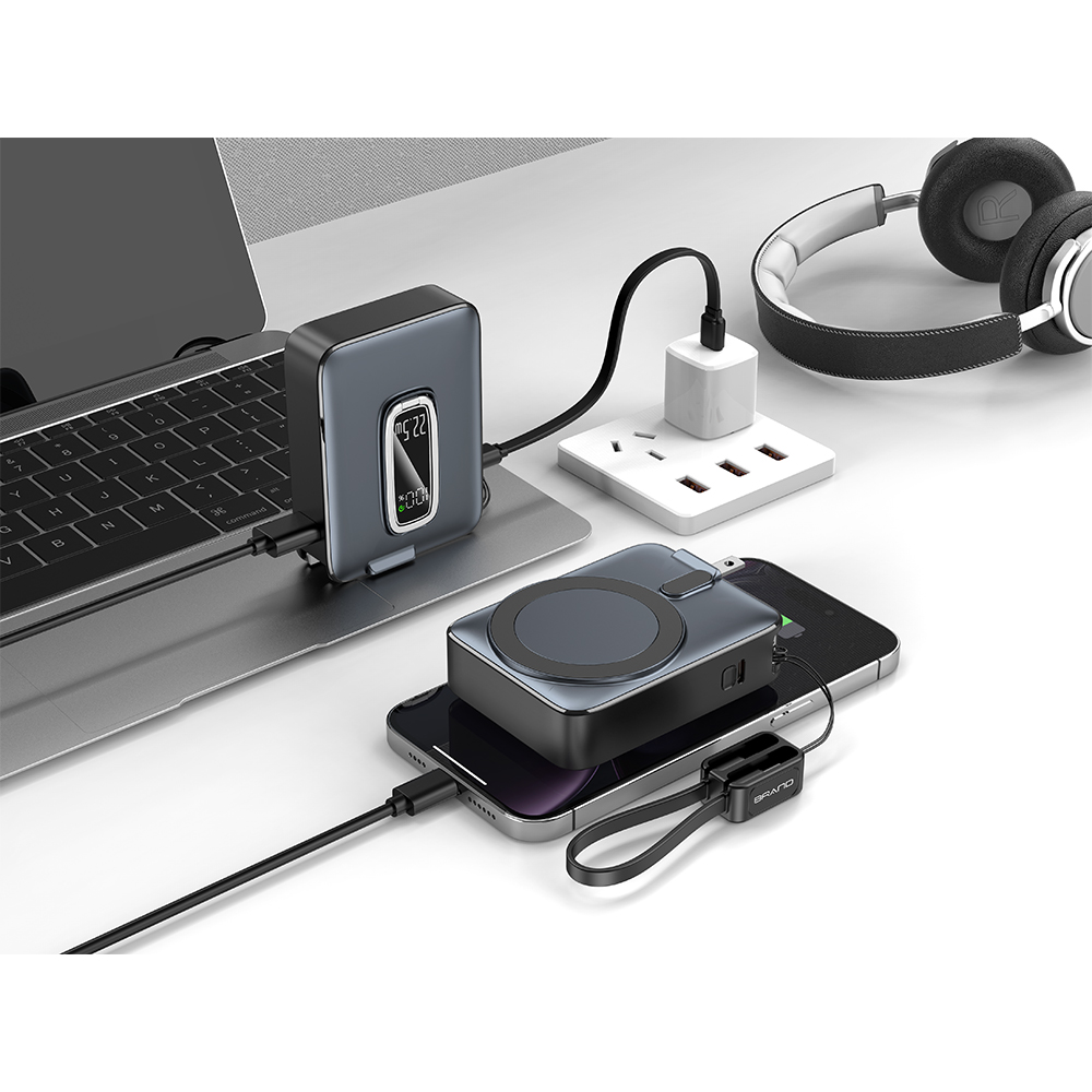 Magnetic Wireless Charger, a 20W PD Fast Charger, a 22.5W Super Charger, and a Wall Charger all fused into one sleek, portable device. With its built-in AC plug and LED display, you have complete power management in the palm of your hand.