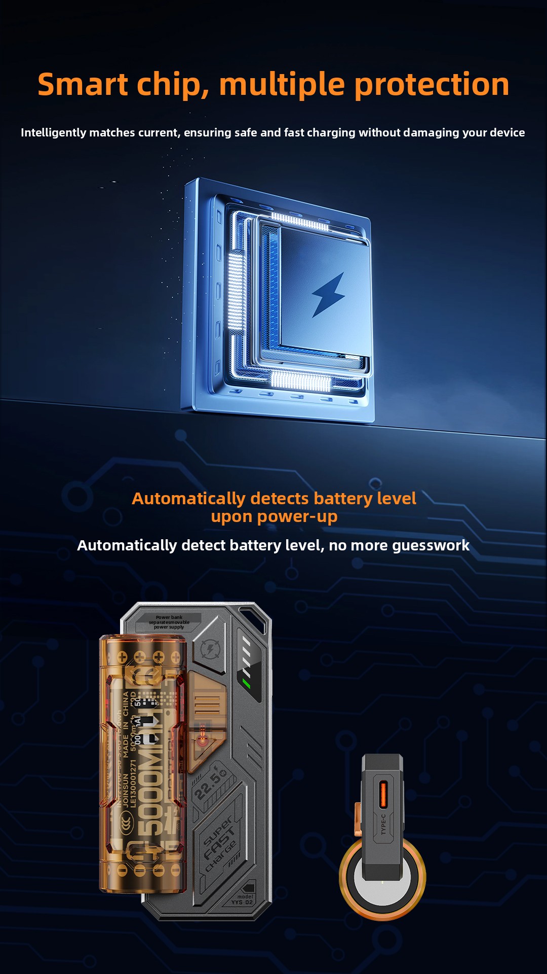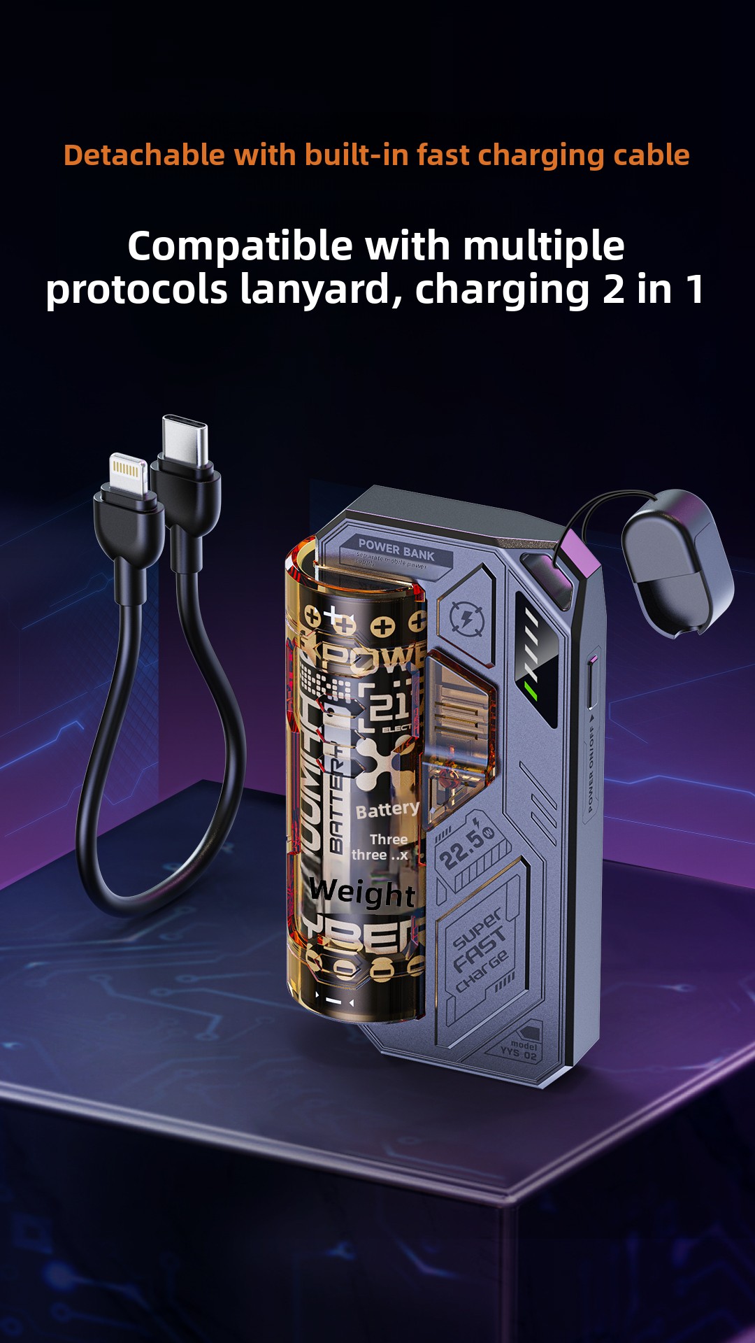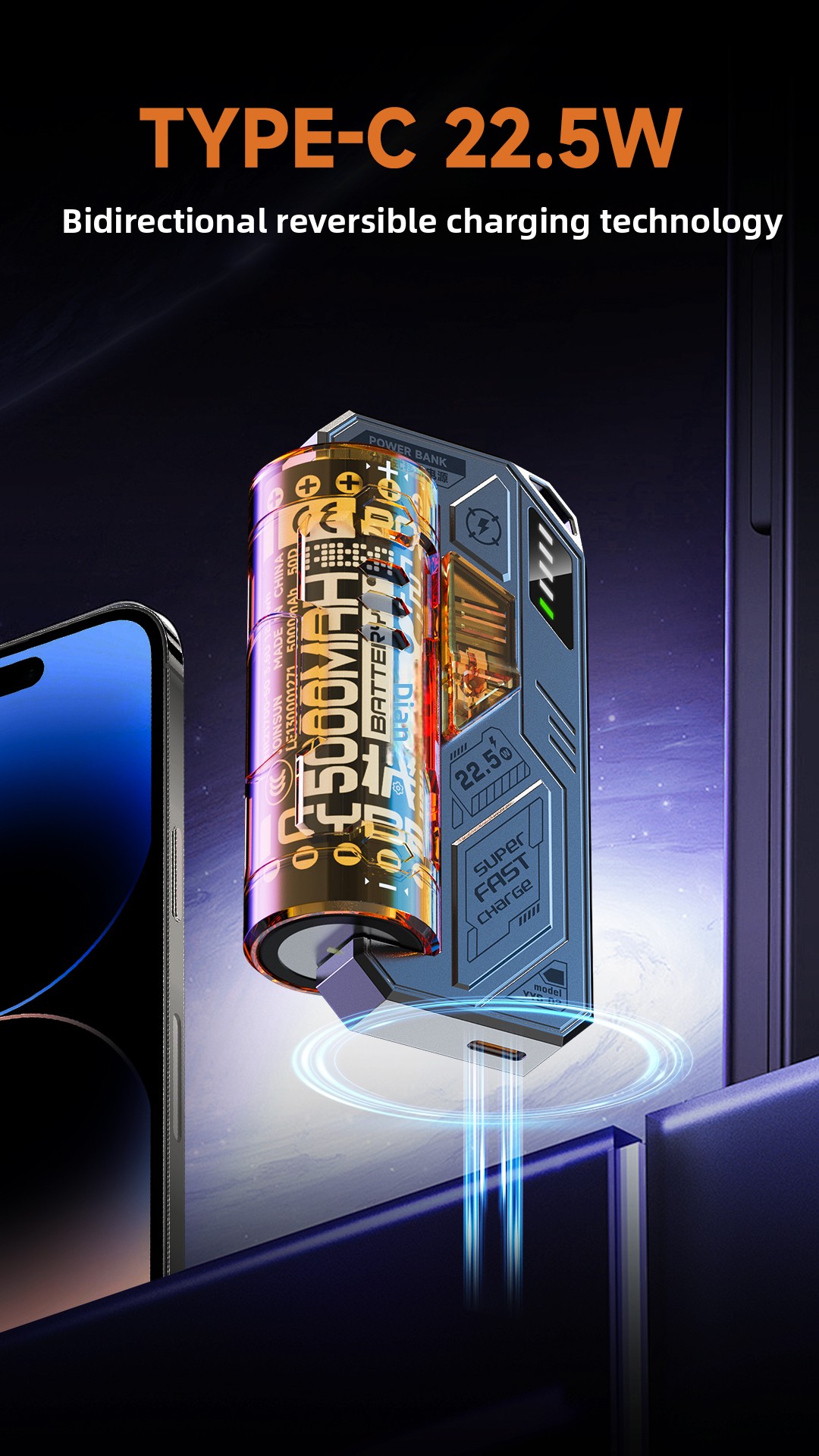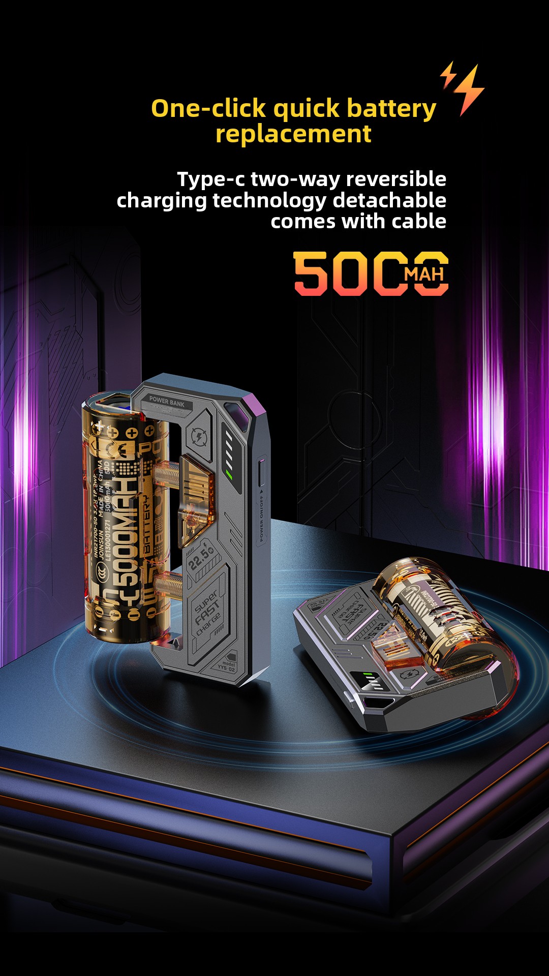 22.5W Super-Fast Charging Power Bank | 5000mAh Detachable & Portable Battery Pack for All Smartphones