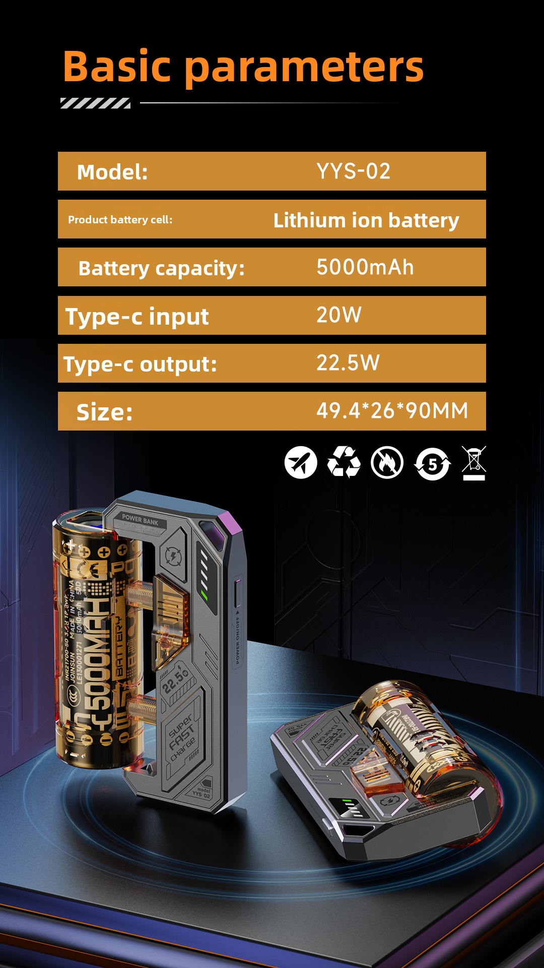 📱 Dual High-Speed Ports: Features both Type-C Input & Output. Supports 22.5W max output for fast charging and 18W max input for quick power bank recharging.