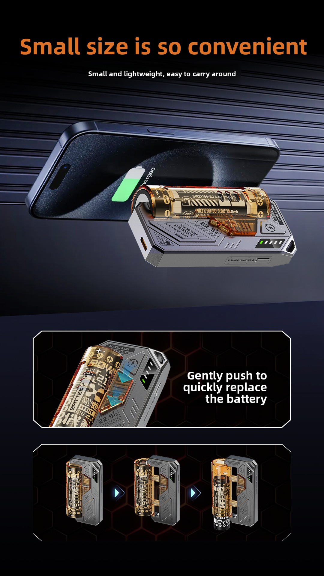 🔄 Unique Detachable Design: The core innovation! Easily replace the 21700 battery cell when its life ends. Eco-friendly and cost-effective, reducing electronic waste.