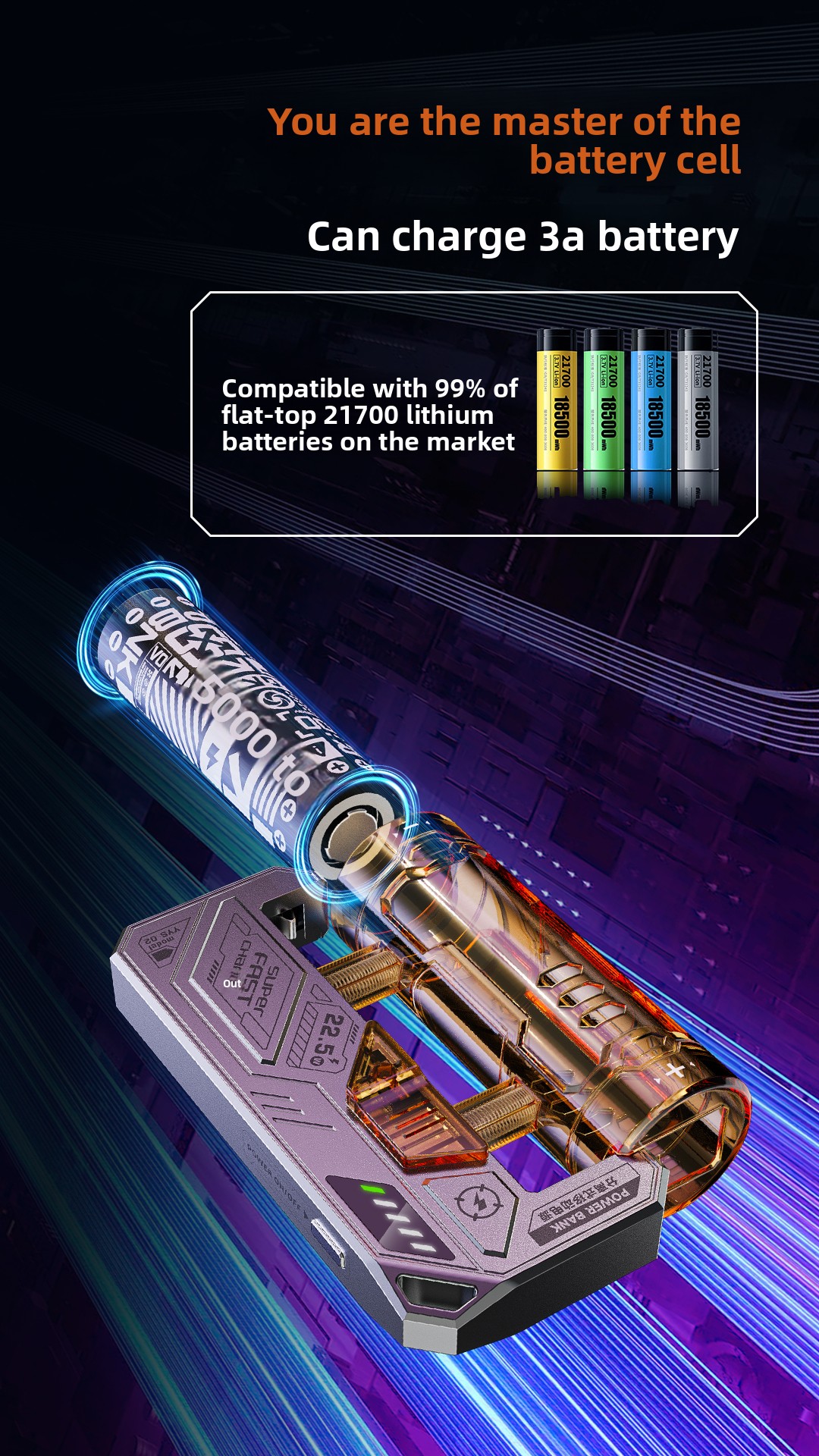 Easily Replaceable: The internal 21700 lithium-ion battery cell can be detached and replaced by the user.