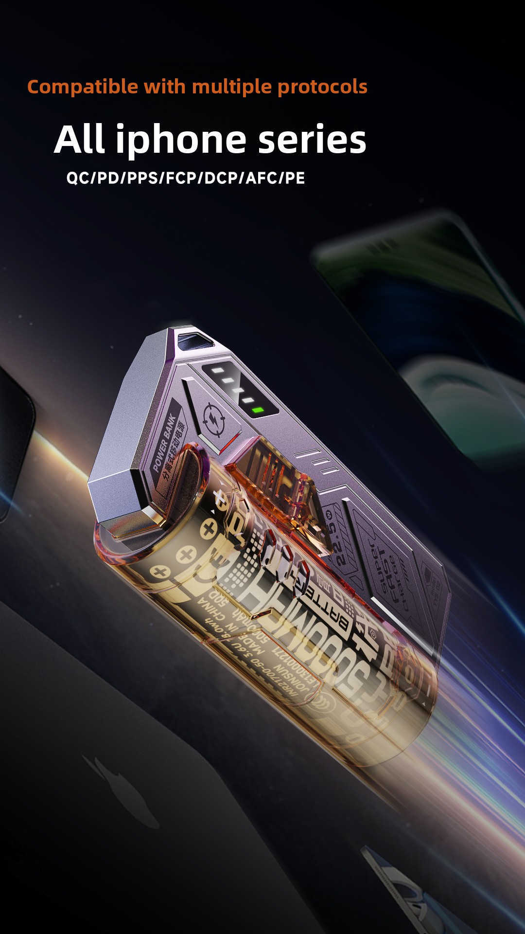 Built from high-grade ABS material, this power bank is tough enough to withstand the rigors of daily use while being remarkably lightweight. Its sleek, pocket-sized dimensions make it the perfect travel partner, ensuring you have reliable power wherever you go.