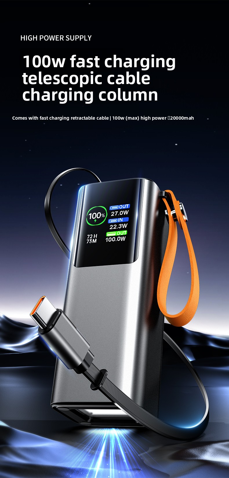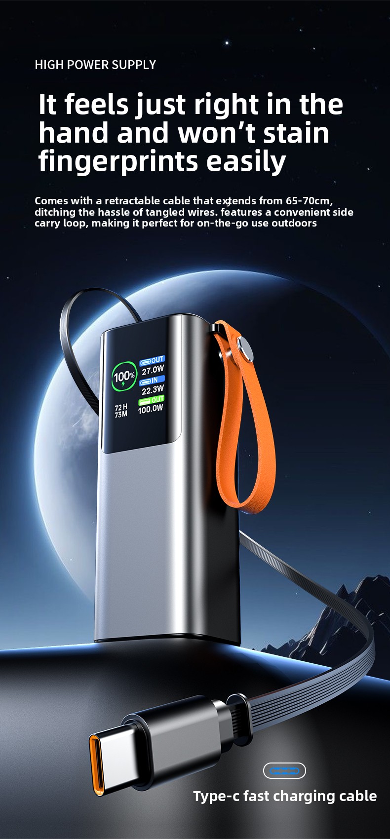 For Your Convenience: The built-in, retractable Type-C cable eliminates the hassle of forgetting your cables. It's always there when you need it.