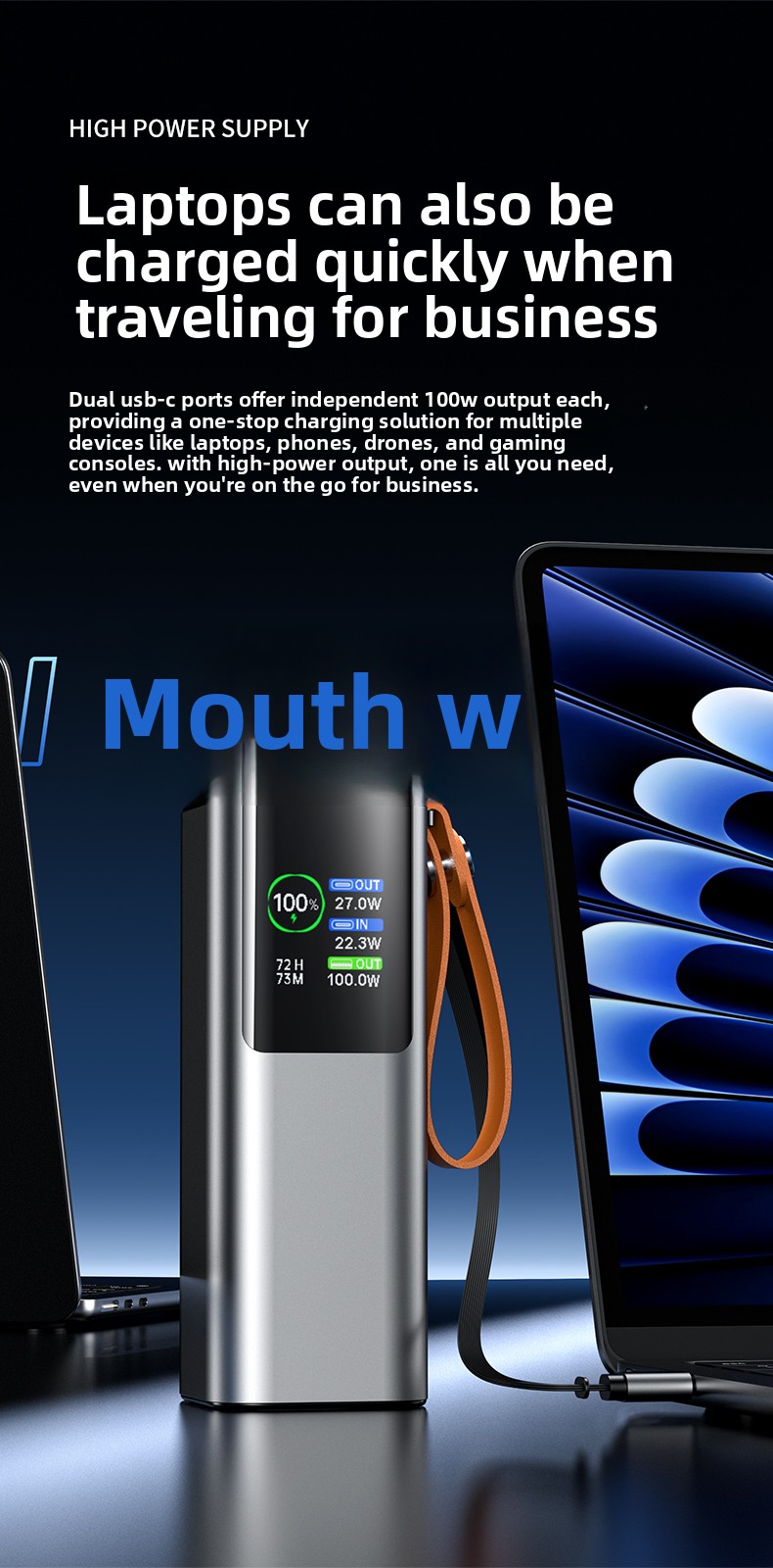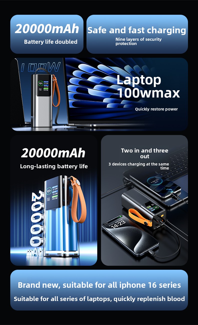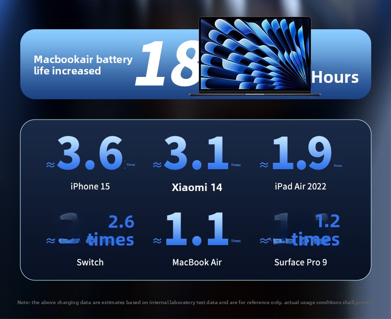 For Your Laptop: The 100W max output via the Type-C port delivers enough power to charge even the most demanding laptops rapidly. No more hunting for power outlets.