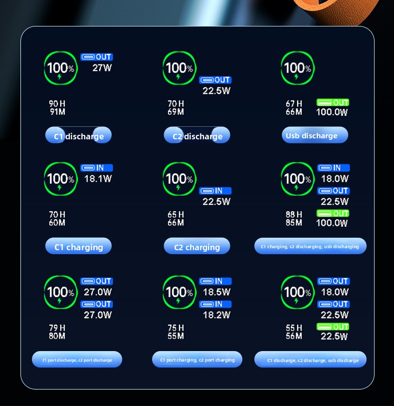 🚀 Dual 65W Inputs: Refuel the power bank itself in just over 1.5 hours using either Type-C port.