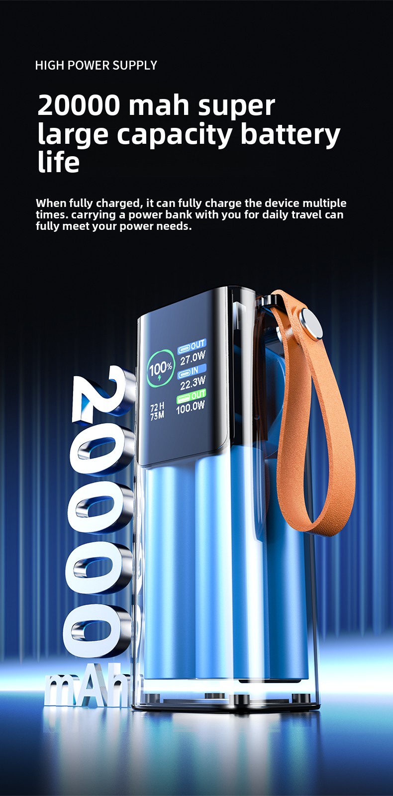 We believe power should be smart and safe. The TFT Dynamic Display provides you with crucial data at a glance, so you're never guessing how much juice you have left. Internally, our multi-protection system safeguards against over-charging, over-discharging, short-circuits, and overheating, ensuring the safety of both your devices and the power bank itself.