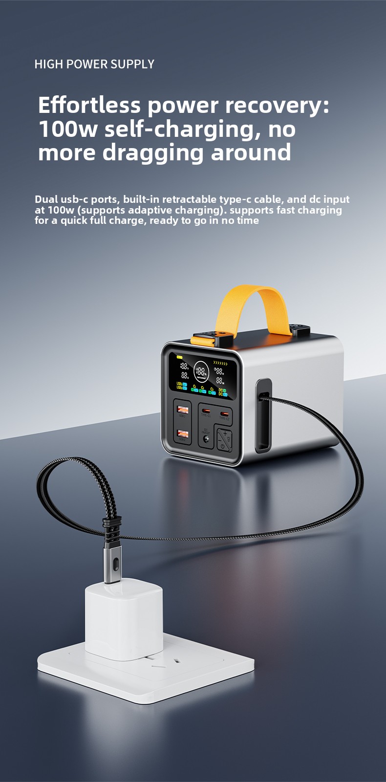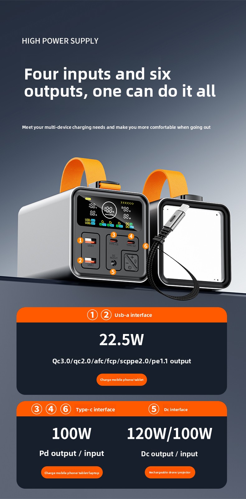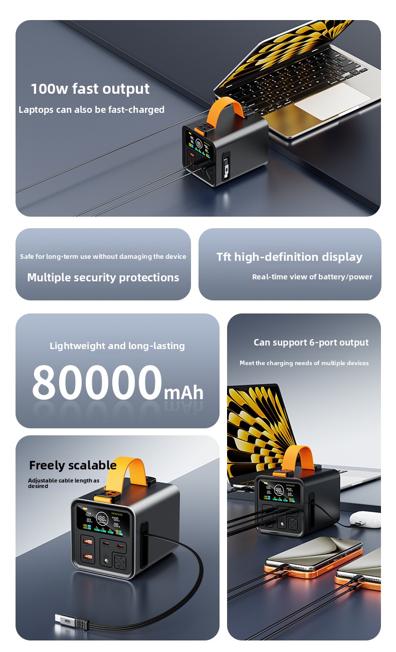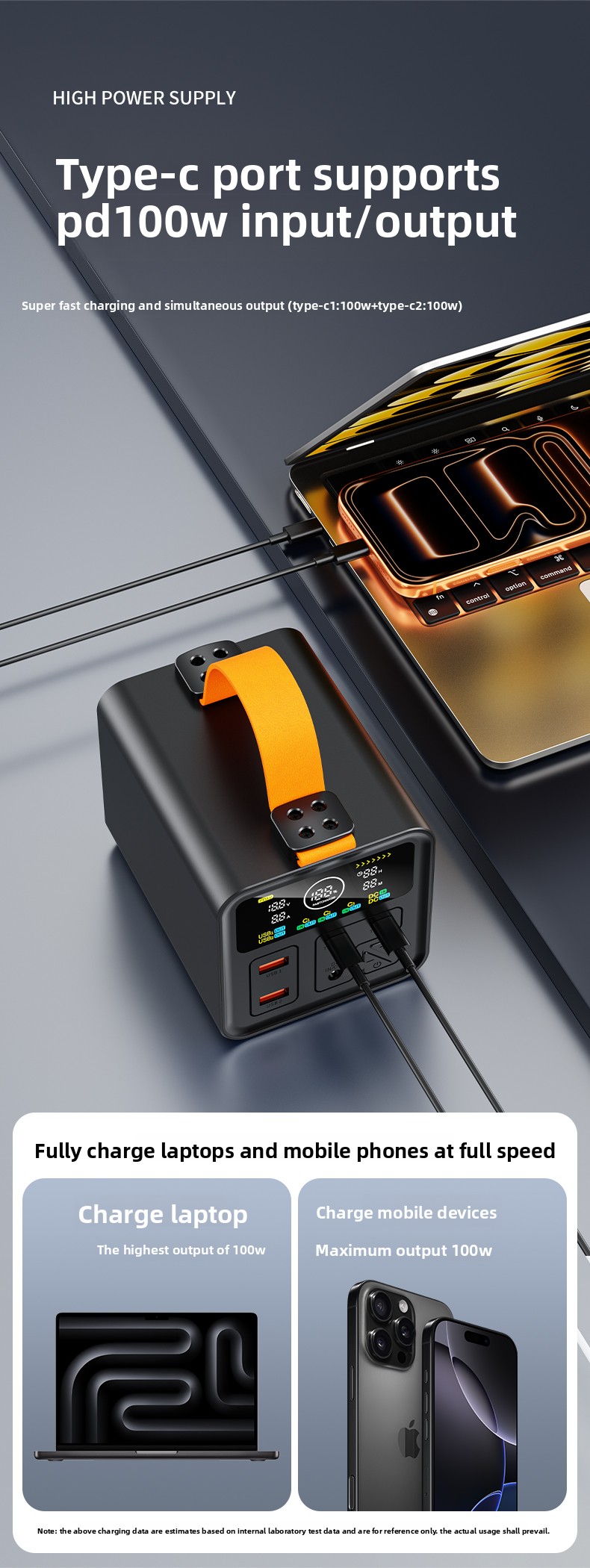 Meet the ultimate high‑capacity power station – designed for professionals, travelers, campers, and anyone who needs serious off‑grid energy. With a massive 80,000mAh (296Wh) battery and 200W total output, this power bank charges two laptops at full speed, powers DC devices, and keeps your entire kit running for days.