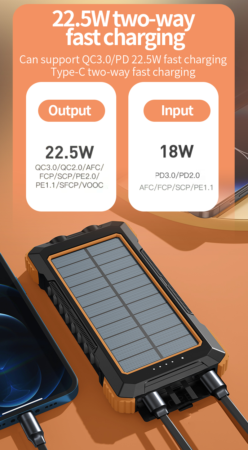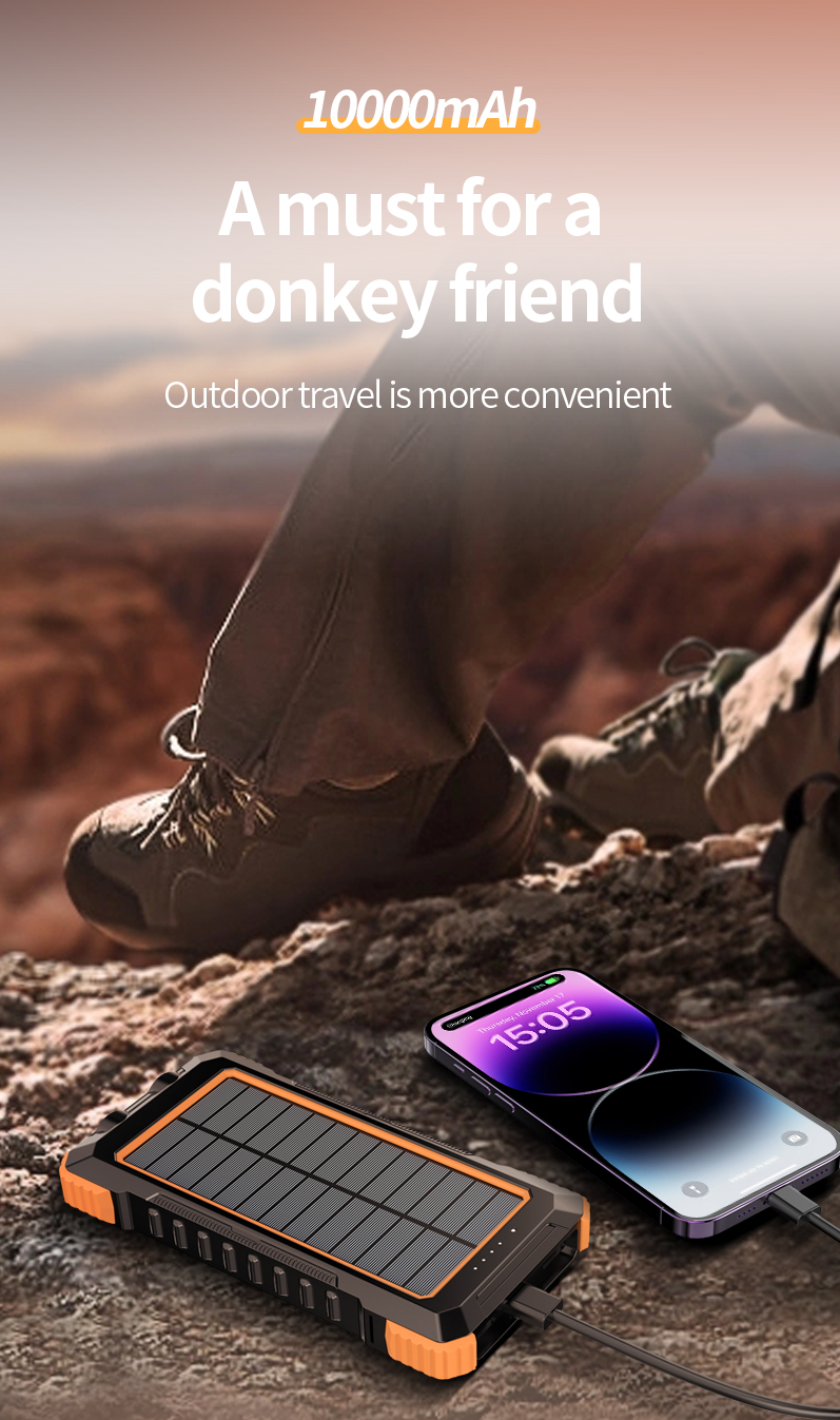 With a massive 10,000mAh battery, efficient single-crystal solar panel, a blindingly bright LED camping light, and versatile 15W Qi wireless charging, it ensures your essential devices stay powered while illuminating your path.